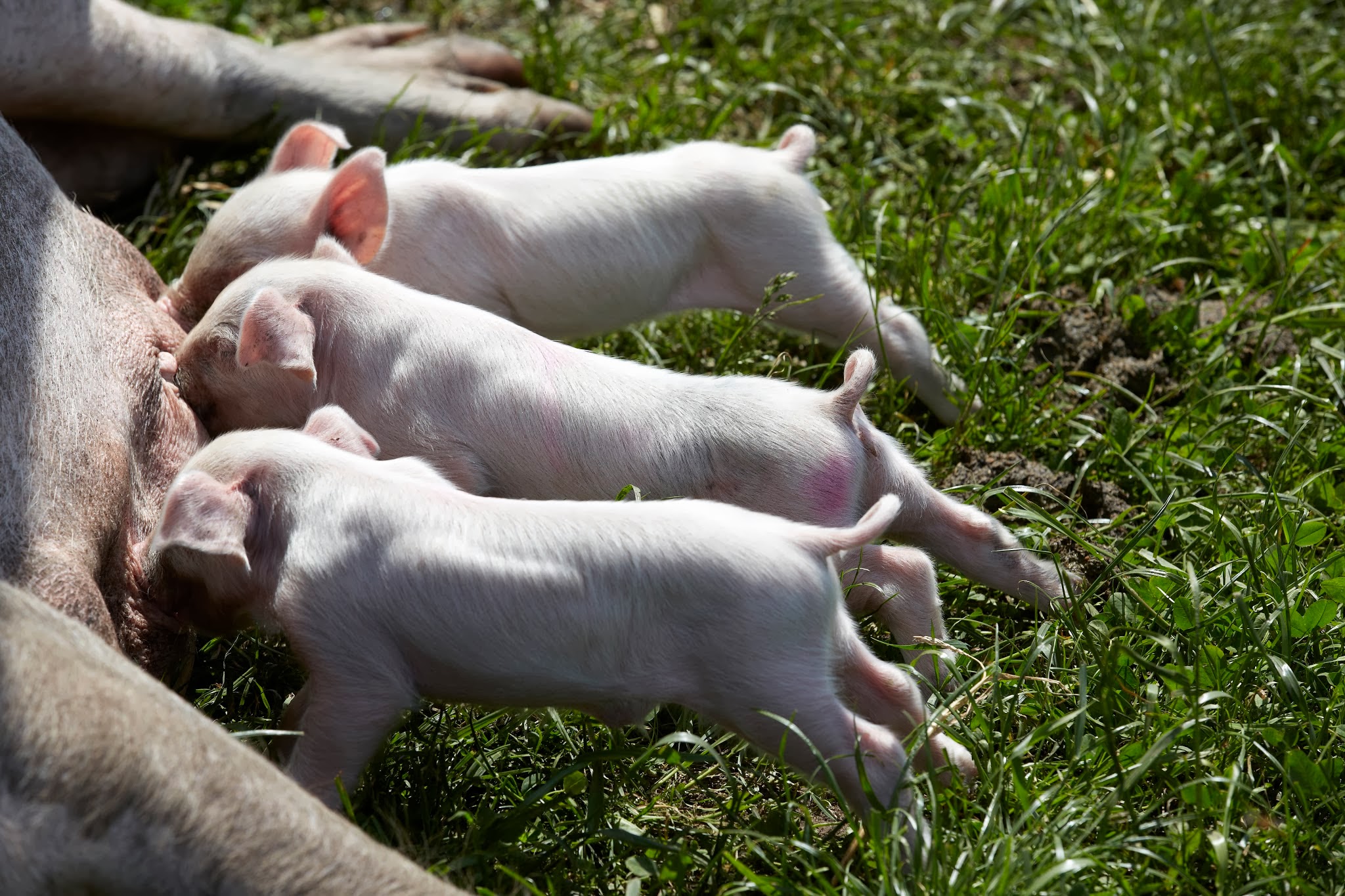 Smågrisene lever og patter hos soen, indtil de er mindst 40 dage (Ø-mærkekrav). Danske økologer har i 2009 indgået en frivillig brancheaftale, som betyder, at smågrise først må vænnes fra soen efter 49 dage. Soens mælk giver smågrisene stor modstandskraft og en sund fordøjelse.