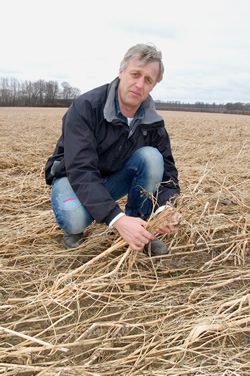 - Efter ærter er der 80 - 100 kg N til rådighed i jorden pr. hektar. Med vores milde klima kan vi normalt høste de første dage i juli. Så holder vi jorden sort og harver nogle uger for at bekæmpe rodukrudt, og omkring første august sår vi olieræddike som mellem- eller efterafgrøde, fortæller Torben Matthiesen.